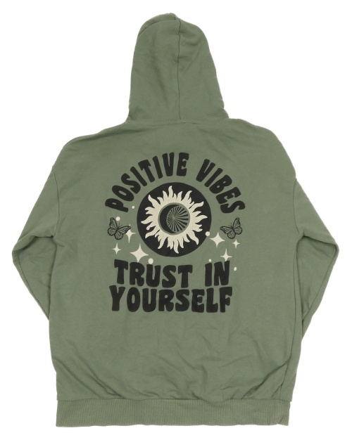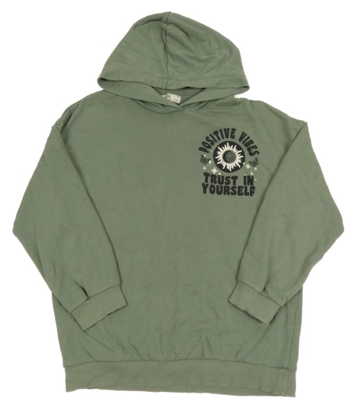Khaki mikina s potiskem s nápisem a kapucí C&A