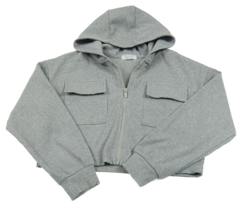 Šedá melírovaná žebrovaná propínací crop mikina s kapsami a kapucí Primark