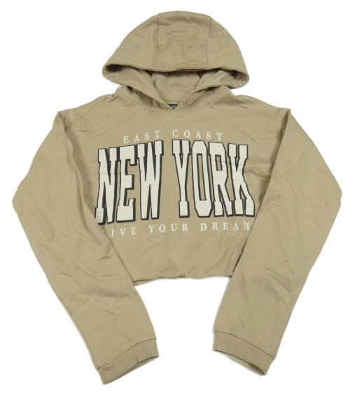 Béžová crop mikina s nápisem a kapucí