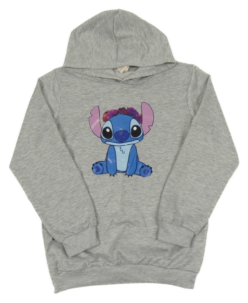 Světlešedá mikina se Stitchem a kapucí