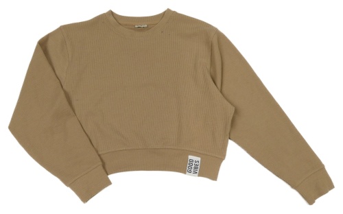 Hnědobéžová žebrovaná oversize crop mikina s nášivkou F&F