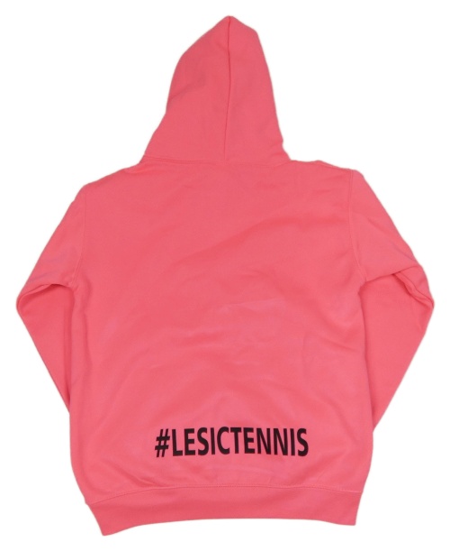 Neonově růžová sportovní mikina s nápisem a kapucí