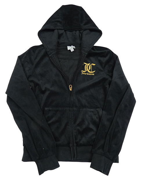 Černá plyšová propínací mikina s nápisem a kapucí Juicy Couture