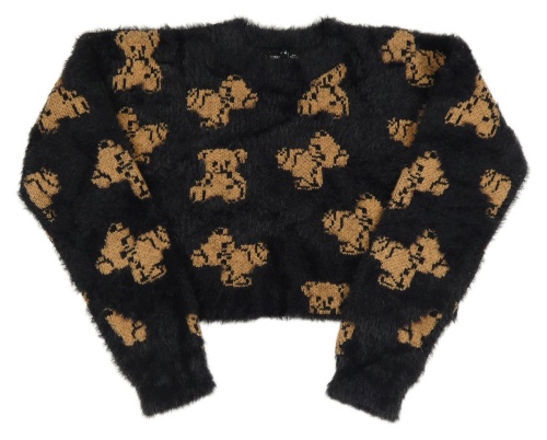Černý chlupatý crop svetr s medvědy Terranova