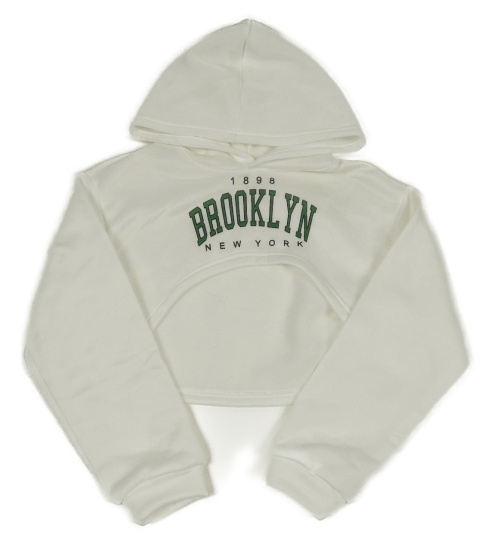 Bílá crop mikina s nápisy a číslem a kapucí SHEIN