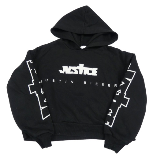 Černá crop mikina s nápisy a kapucí - Justin Bieber