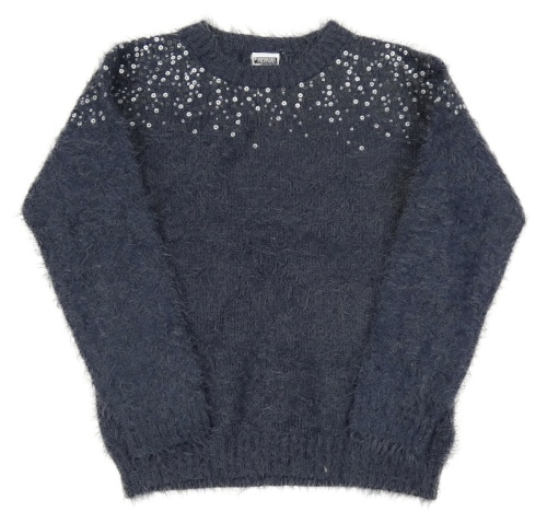 Tmavomodrý chlupatý svetr s flitry POCOPIANO