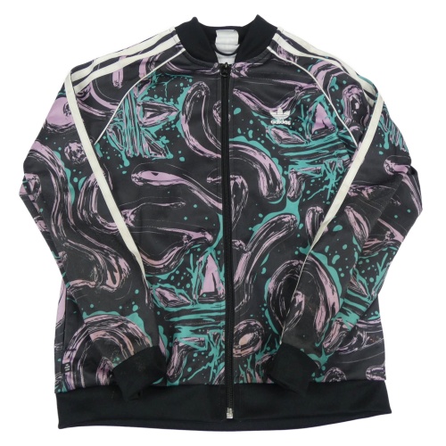 Černo-starorůžovo-modrozelená vzorovaná skvrnitá propínací mikina Adidas