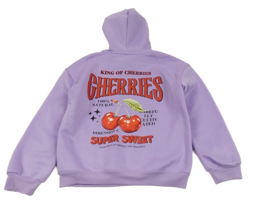 Lila mikina s třešněmi a nápisy a kapucí Shein