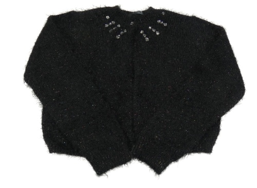 Černo-barevné chlupaté svetrové bolerko s kamínky George