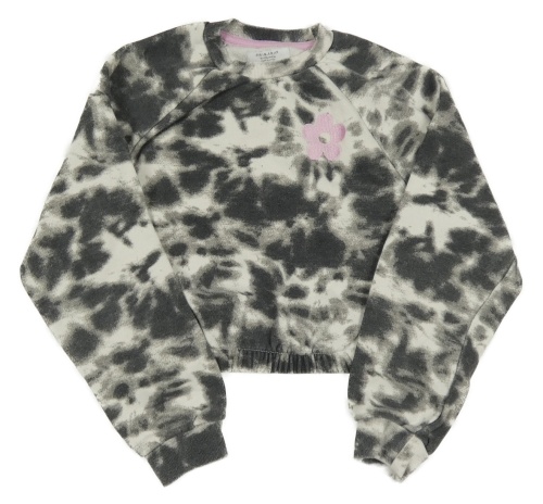 Tmavošedo-bílá batikovaná crop mikina s květem PRIMARK