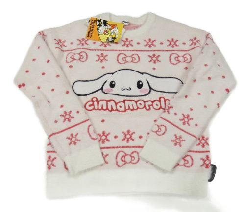 Nové - Světlerůžový chlupatý vzorovaný svetr s Cinnamoroll - Hello Kitty