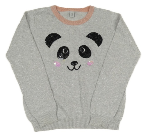 Stříbrno-růžový třpytivý svetr s pandou z flitrů Tu