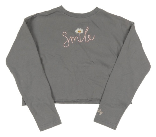 Šedá crop mikina s nápisem s kytičkou s korálky PRIMARK