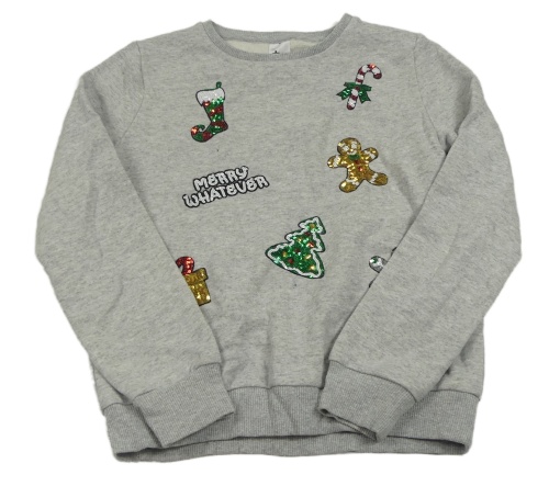Šedá melírovaná mikina s vánočními obrázky z flitrů C&A