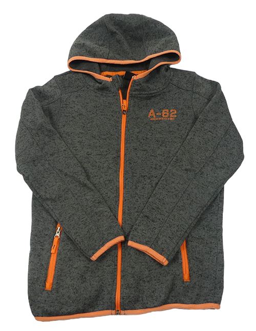 Tmavošedo-černá melírovaná pletená propínací mikina s číslem a kapucí Chapter young