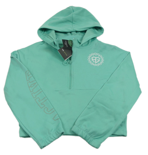 Nové - Mátová propínací crop mikina s potiskem a kapucí
