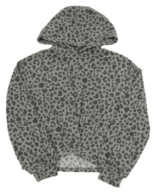 Šedý žebrovaný úpletový crop svetr s flíčky a kapucí Nutmeg