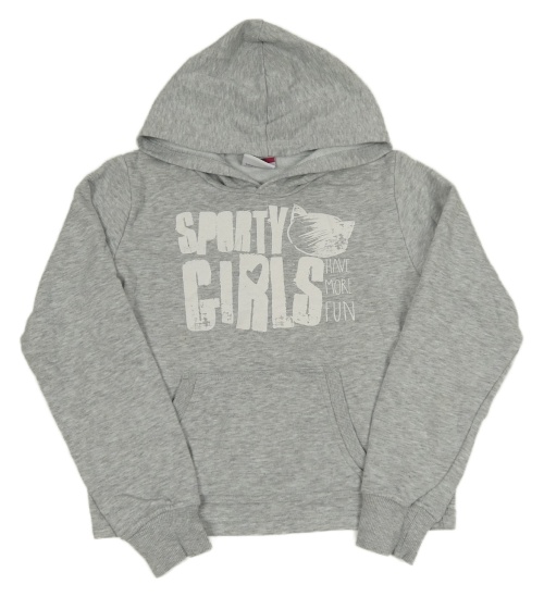 Šedá melírovaná crop mikina s nápisem a kapucí Yigga