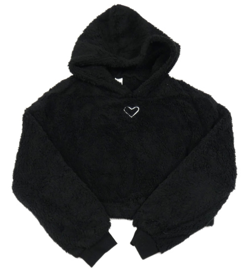Černí chlupatá crop mikina se srdcem a kapucí Shein