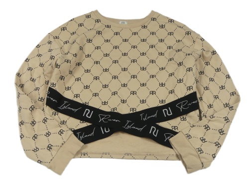 Béžovo-černá vzorovaná crop mikina s logy RIVER ISLAND