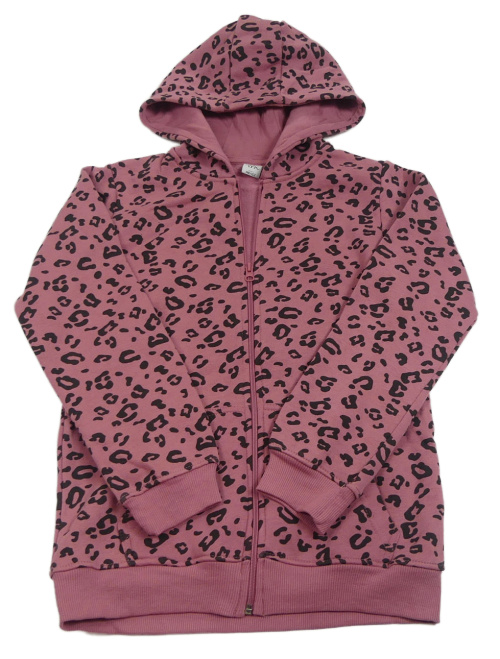 Starorůžová propínací mikina s leopardím vzorem a kapucí Y.F.K.