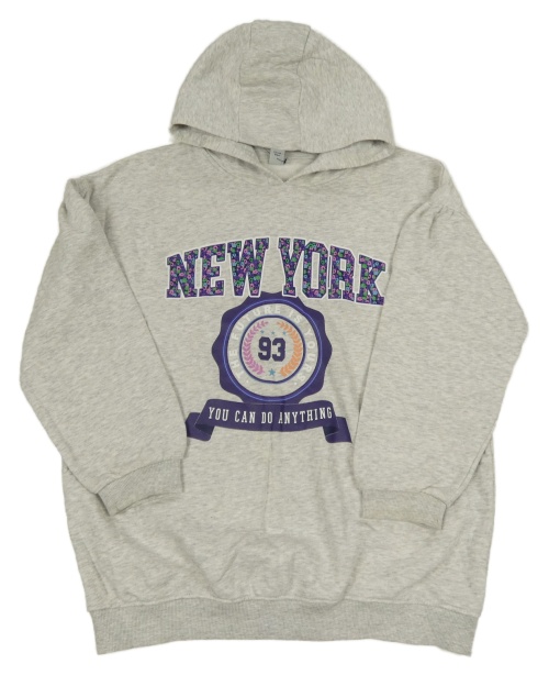 Šedá melírovaná mikina s nápisem a kapucí Tu