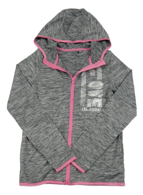 Šedá melírovaná propínací sportovní mikina s nápisem a kapucí Ergeenomixx