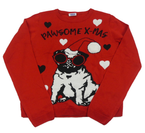 Červený svetr s mopsem a srdíčky Hip&Hopps