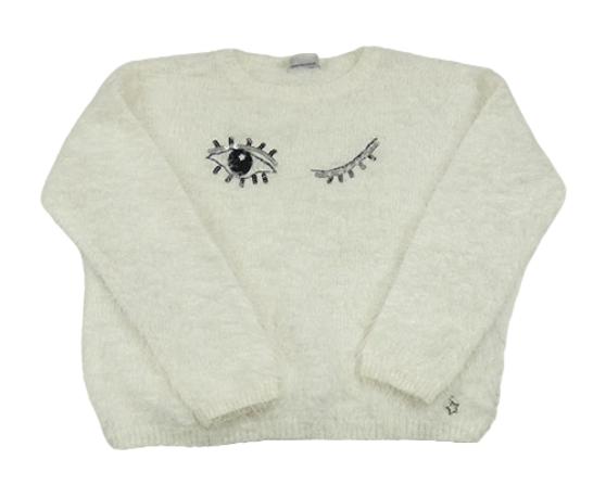 Smetanový chlupatý svetr s očima z flitrů Yigga