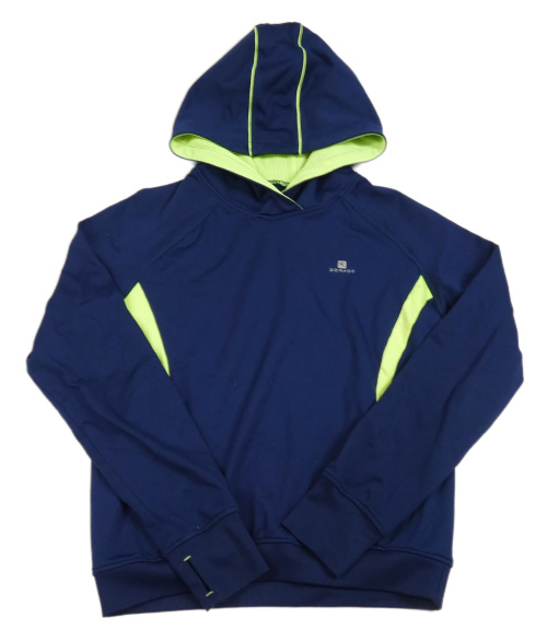 Tmavomodrá sportovní funkční mikina s pruhy a kapucí Decathlon