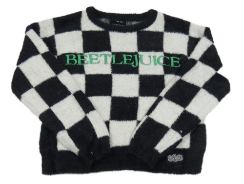 Černo-bílý kostkovaný crop svetr s nápisem