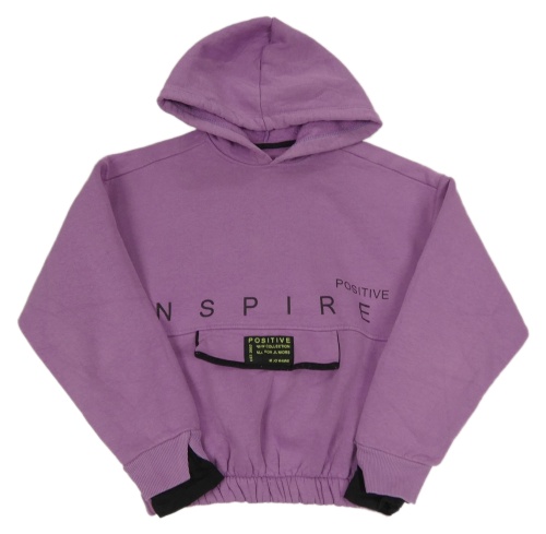 Fialová crop mikina s nápisem, kapsou a kapucí