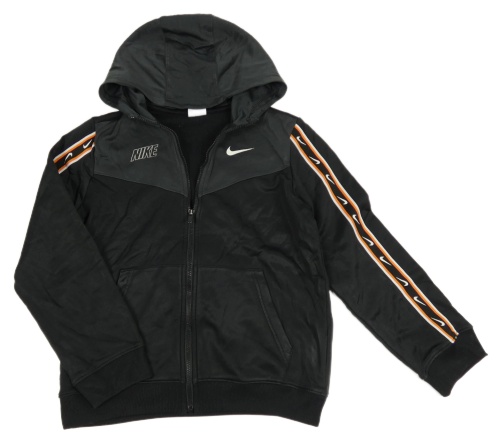 Černo-tmavošedá funkční sportovní propínací mikina s logy a pruhem a kapucí Nike