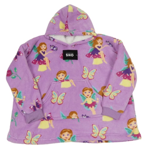 Nové - Lila plyšová oversize mikina s vílami a kapucí OHS
