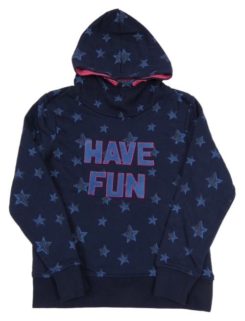 Tmavomodrá mikina s hvězdami, nápisem a kapucí Yigga