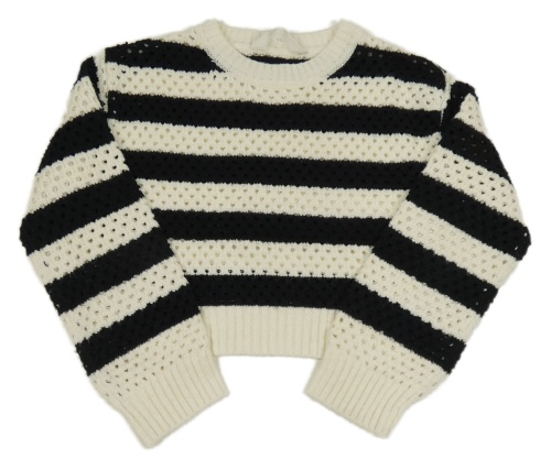 Bílo-černý pruhovaný perforovaný crop svetr H&M