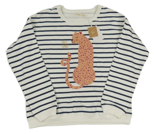 Nové - Bílo-tmavomodrá pruhovaná mikina s leopardem Sfera