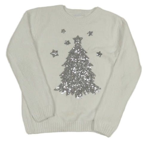 Smetanový žinylkový svetr s vánočním stromečkem z flitrů a hvězdičkami PRIMARK