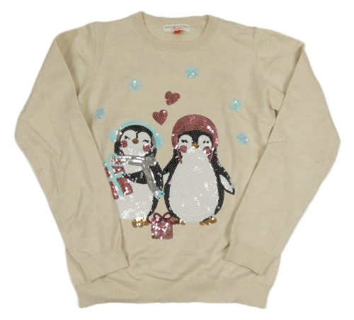 Smetanový svetr s tučňáky a vločkami z flitrů Society Eight