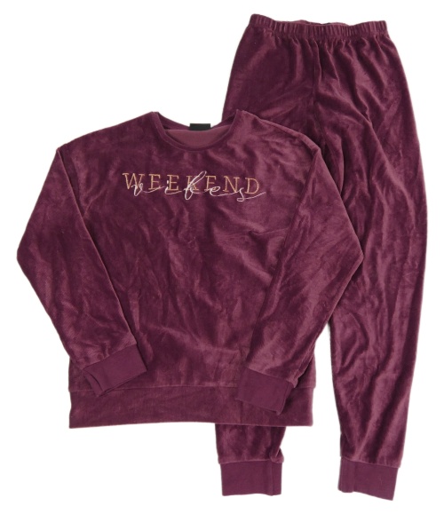 2Set - Vínová žebrovaná sametová mikina s nápisy + tepláky C&A