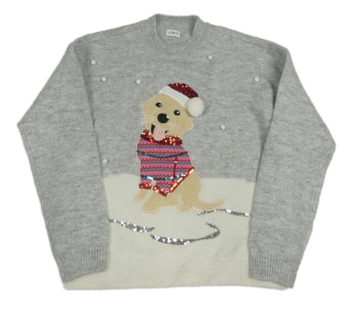 Šedo-bílý třpytivý svetr s pejskem F&F