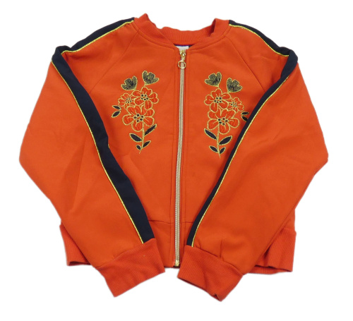 Červeno-tmavomodro-zlatá propínací zateplená crop mikina s výšivkami květů