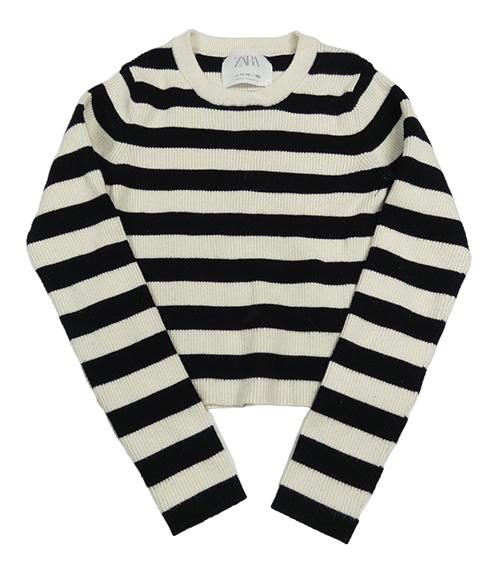 Bílo-černý pruhovaný žebrovaný crop svetr ZARA