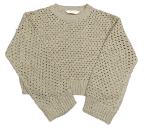 Světlebéžovo-bílý melírovaný ažurový pletený crop svetr H&M