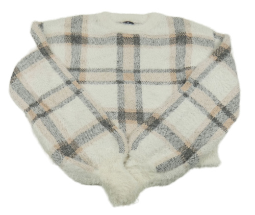 Bílo-šedo-růžový kostkovaný crop chlupatý svetr Firetrap