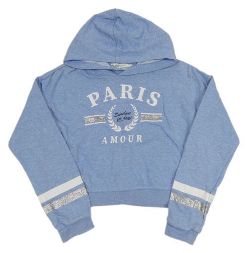 Modrá melírovaná crop mikina s nápisem a kapucí H&M