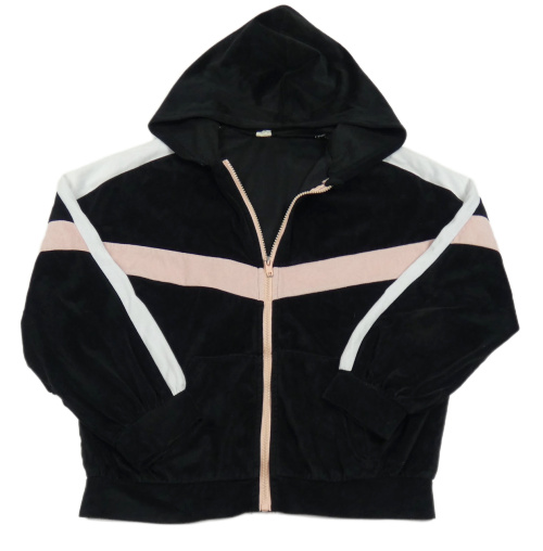 Černo-růžovo-bílá sametová propínací mikina s kapucí Shein