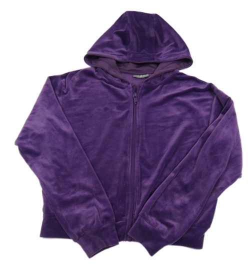 Fialová plyšová propínací crop mikina s kapucí