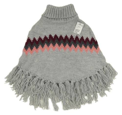 Šedo-růžovo-vínové vzorované svetrové pončo a třásněmi H&M